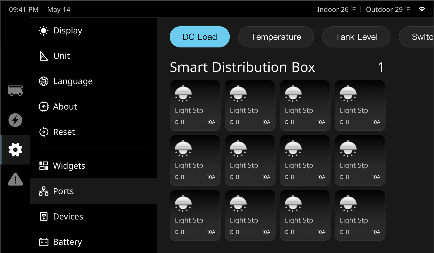 0,5 W @ 12 V (Bildschirm aus, WLAN eingeschaltet)