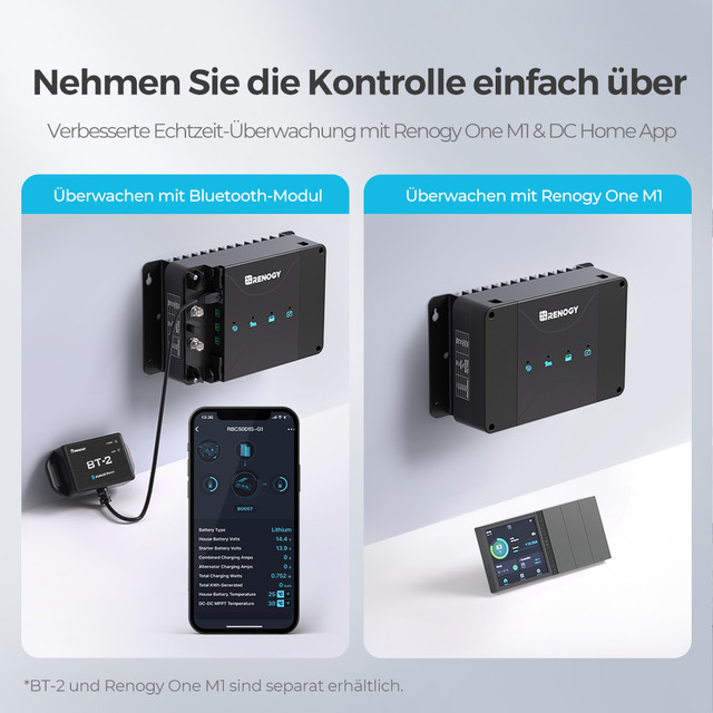 - 【Fernüberwachung und -steuerung】 Nutzen Sie den RJ45 Kommunikationsanschluss mit dem BT2 Bluetooth Modul und der Renogy DC Home App, um Ihr Gerät in Echtzeit von Ihrem Telefon aus zu überwachen und zu steuern und so den Komfort und die Benutzerfreundlichkeit zu erhöhen.